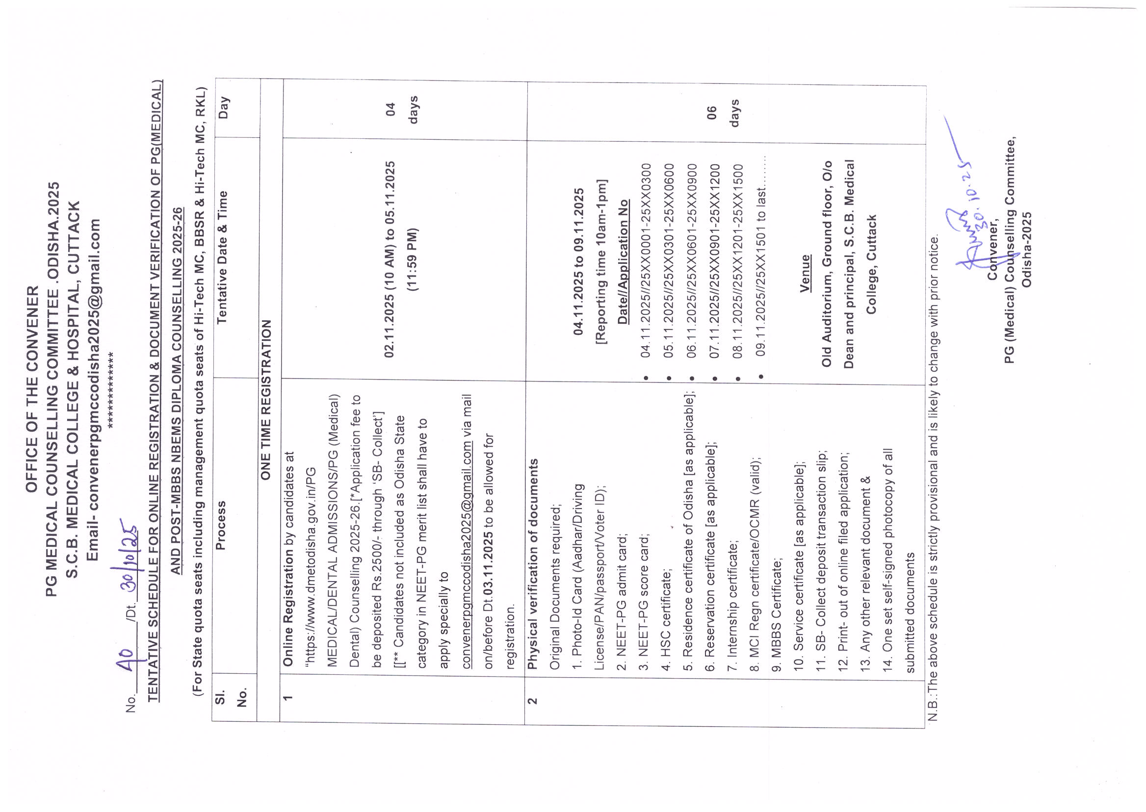 Revised Counseliing Schedule-Online Application / Doc Verification |